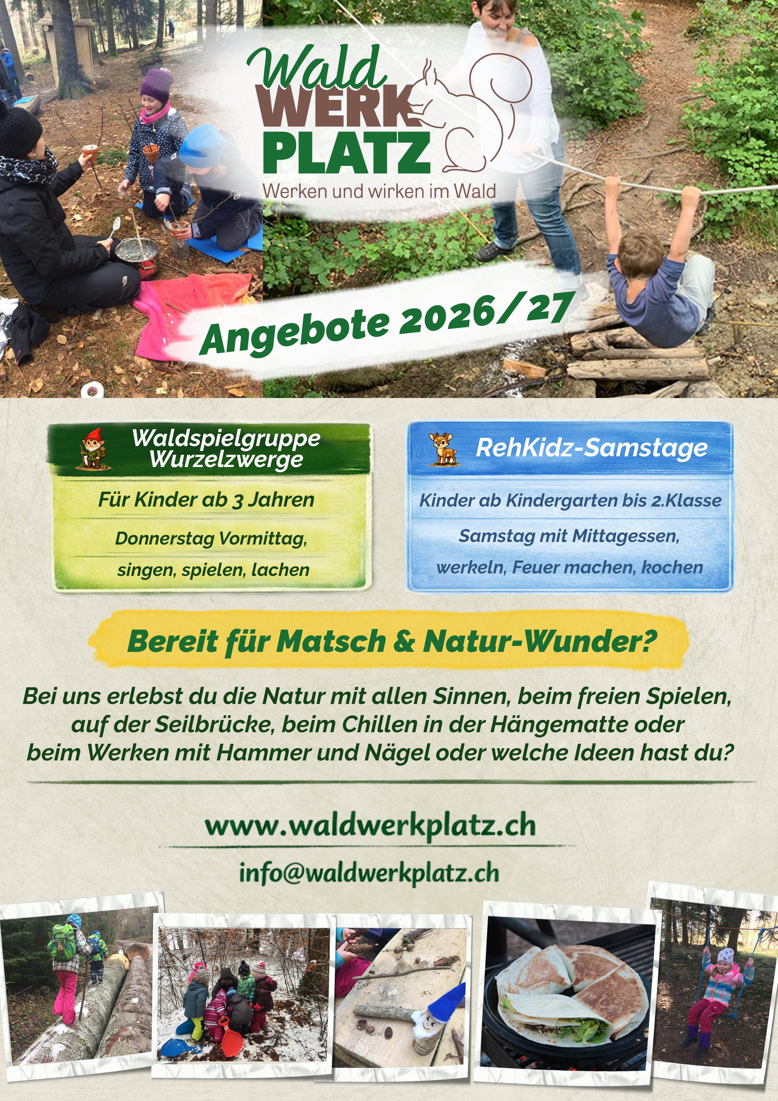 Auch dieses Jahr besteht für die Kinder ab 3 Jahren bis 2. Klasse die Möglichkeit an unserem Wald-Angebot teilzunehmen. Bei Fragen einfach melden, wir freuen uns auf Dich!
